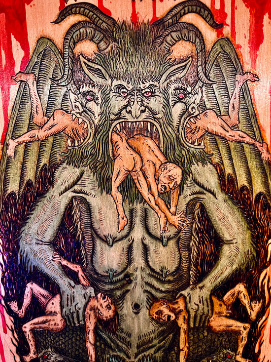 Hand-burned wood panels and engraved glass relics for collectors of the macabre. Each original piece is pulled from medieval art, mythology, and the occult.Ideal for gothic home decor, altars, or anyone who prefers their art a little damned.Handmade by Jean Saiz.