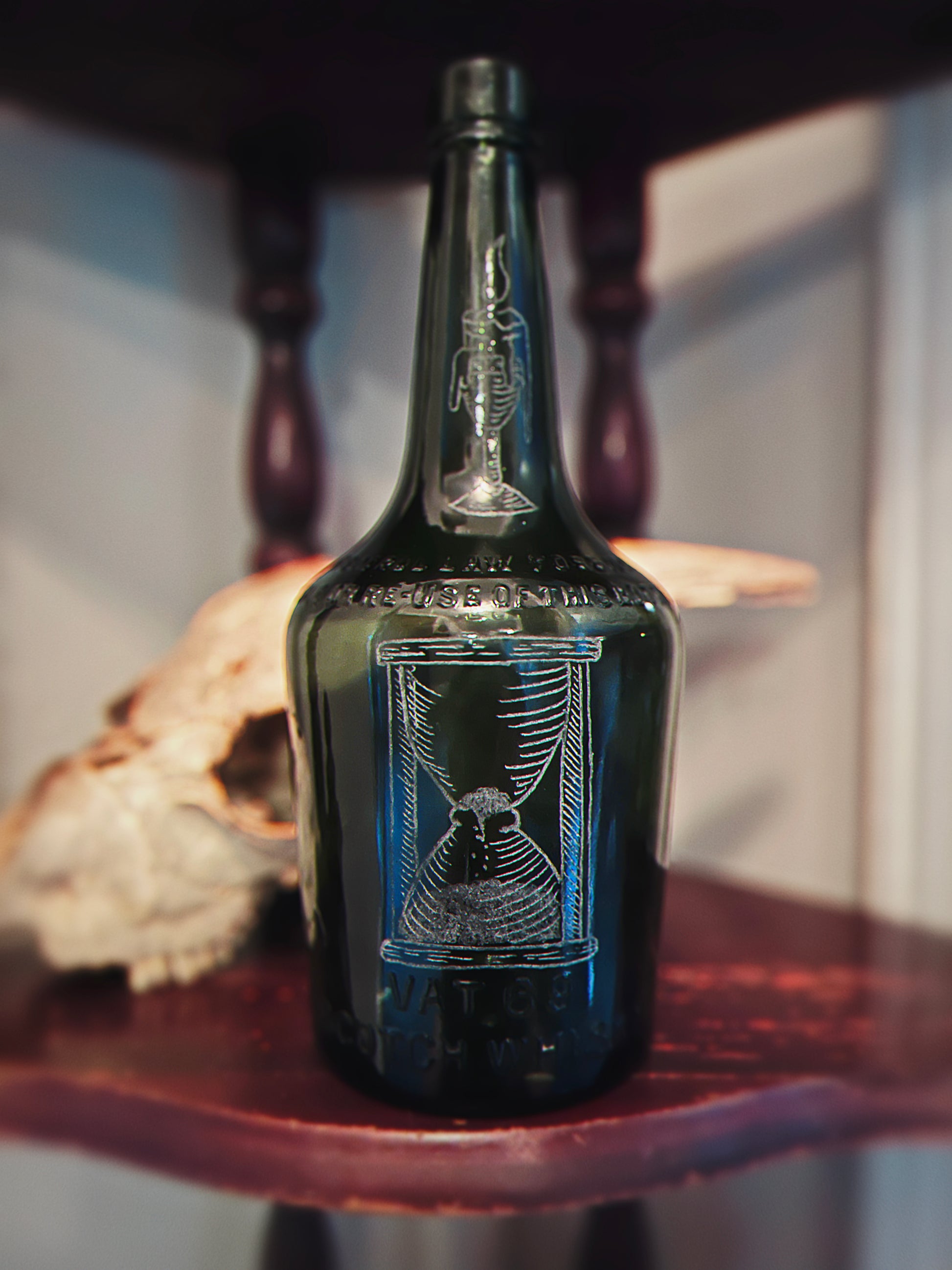 OMNIA VANITAS Engraved Vintage Whiskey Bottle